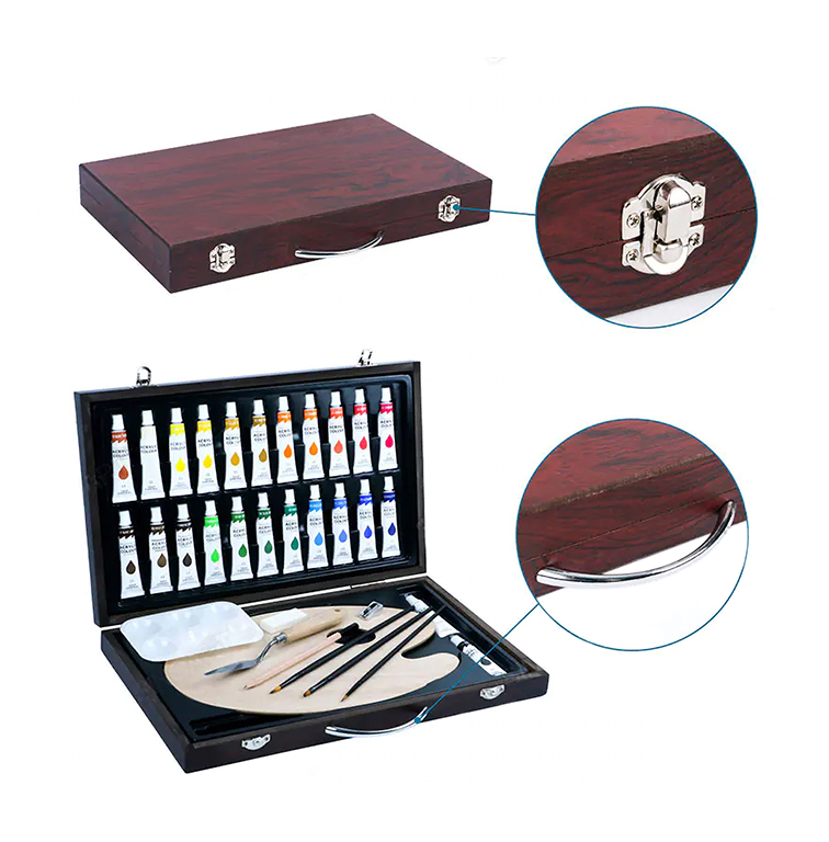The Sinoart acrylic paint set, presented in a beautiful wooden box, is ideal for beginners and hobbyists who want to explore acrylic painting. It includes everything you need to start creating right away. The paints are vivid and versatile, with a semi-transparent finish perfect for watercolor-style washes and glazing effects on canvas. They can be used on a variety of surfaces, including canvas, paper, cardboard, wood, and more. It’s also a perfect gift for any art enthusiast.