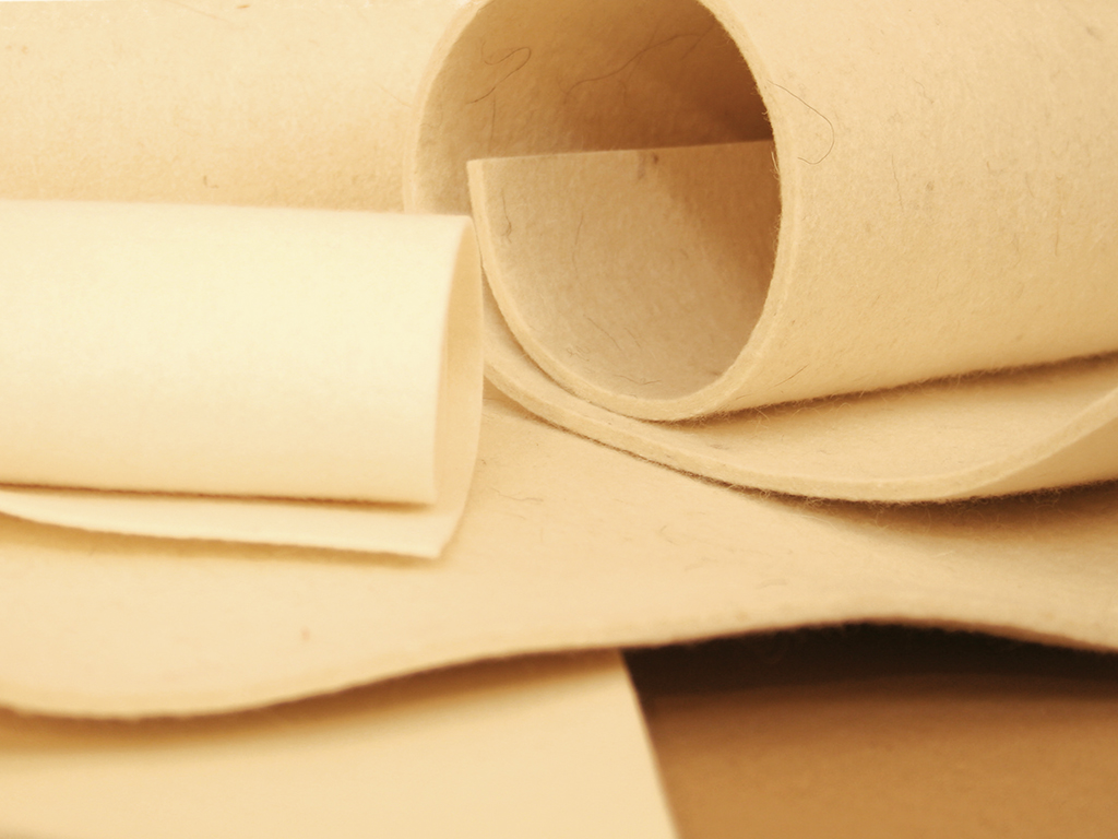 Soft printing felt used as a layer between print and roll for all printing presses. Especially suitable for lino printing, but also for other applications.