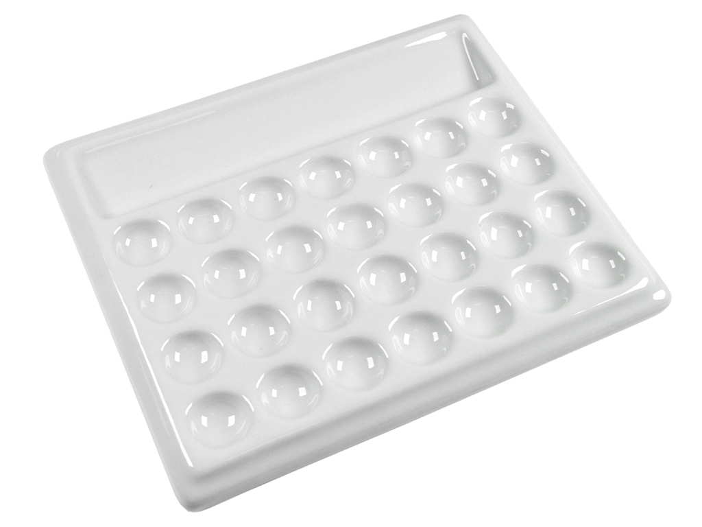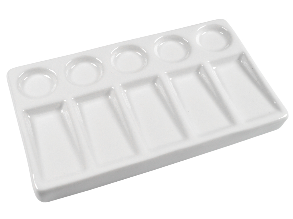 Ant keraminės paletės „Sinoart“ puikiai tinka maišyti akvarelę, guašą, tušą ir kitus vandens pagrindu pagamintus dažus. Lygus porcelianinis paviršius lengvai valomas, o svoris suteikia paletei stabilumo, todėl dažus maišyti yra lengva.