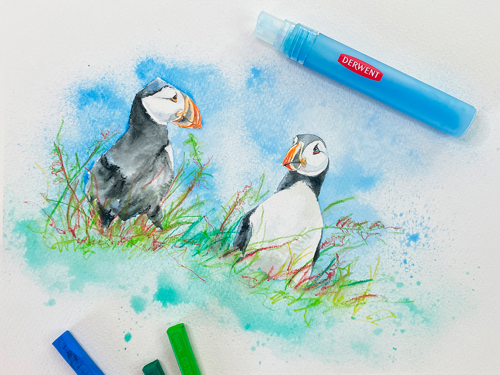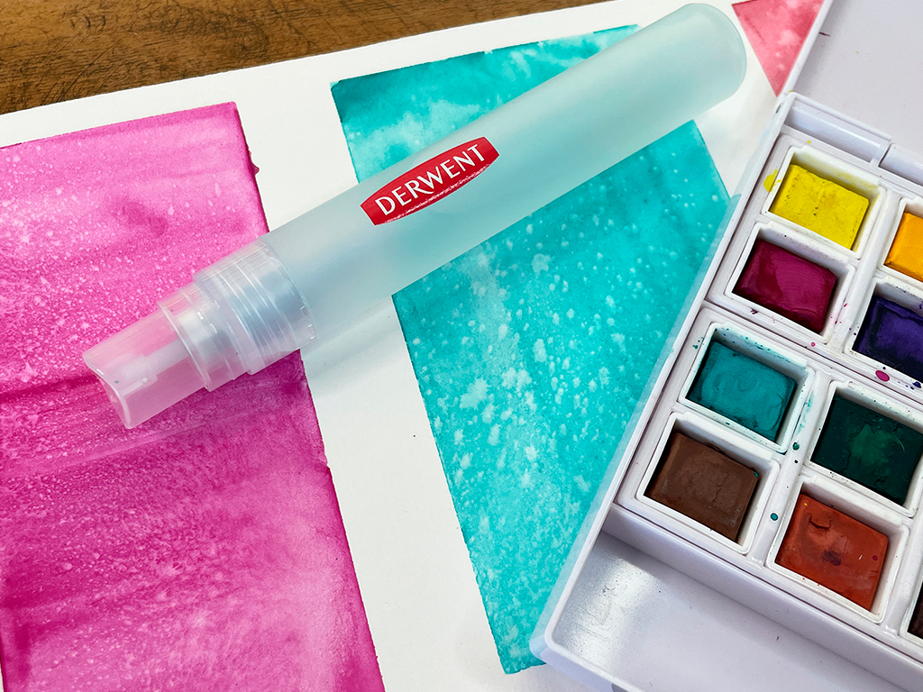 Vandeniu liejamiems darbams šis purkštukas suteiks naują kūrybišką išvaizdą. Tiesiai ant akvarele piešiamo darbo užpurkštas vanduo sukuria įdomią tekstūrą, dažų nutekėjimus ir nuvarvėjimus. Dažų pigmentą (pavyzdžiui, „Inktense“ arba akvarelės) galima ištirpinti ir „Grate ‘n’ Shake“ indelyje, gautu skysčiu pripildyti purkštuką ir tada dažus purkšti tiesiai ant popieriaus. Dažnas dailininkas ant piešinio užpurškia šiek tiek vandens, kad paviršius būtų drėgnas.