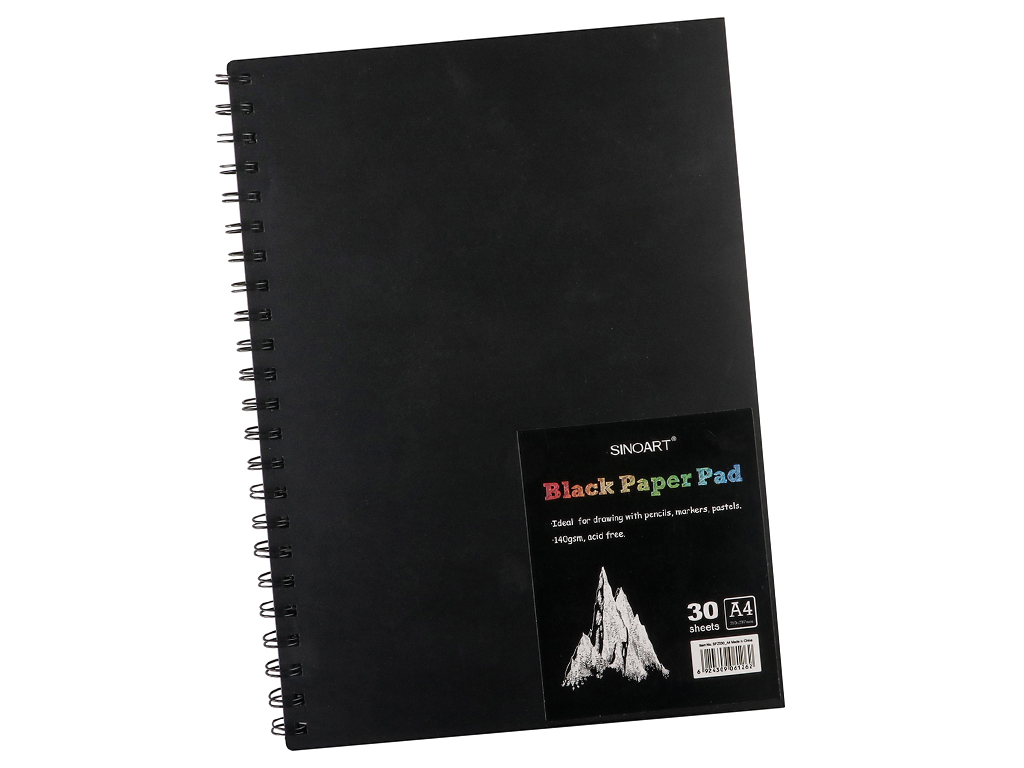 Juodas popierinis universalus bloknotas „Sinoart“ tinka piešiniams, iliustracijoms, rankdarbiams ir dekoratyviniam menui. Puikiai tinka eskizams, piešimui ir kaligrafijai, piešimui pieštukais, pastelėmis, žymekliais ir pan. Giliai juodas fonas ypač išryškina baltą, nepermatomas ir metalines spalvas, tinka tušui, žymekliams ir kitoms technikoms. Sudėtyje nėra rūgščių, todėl yra itin kokybiškas.