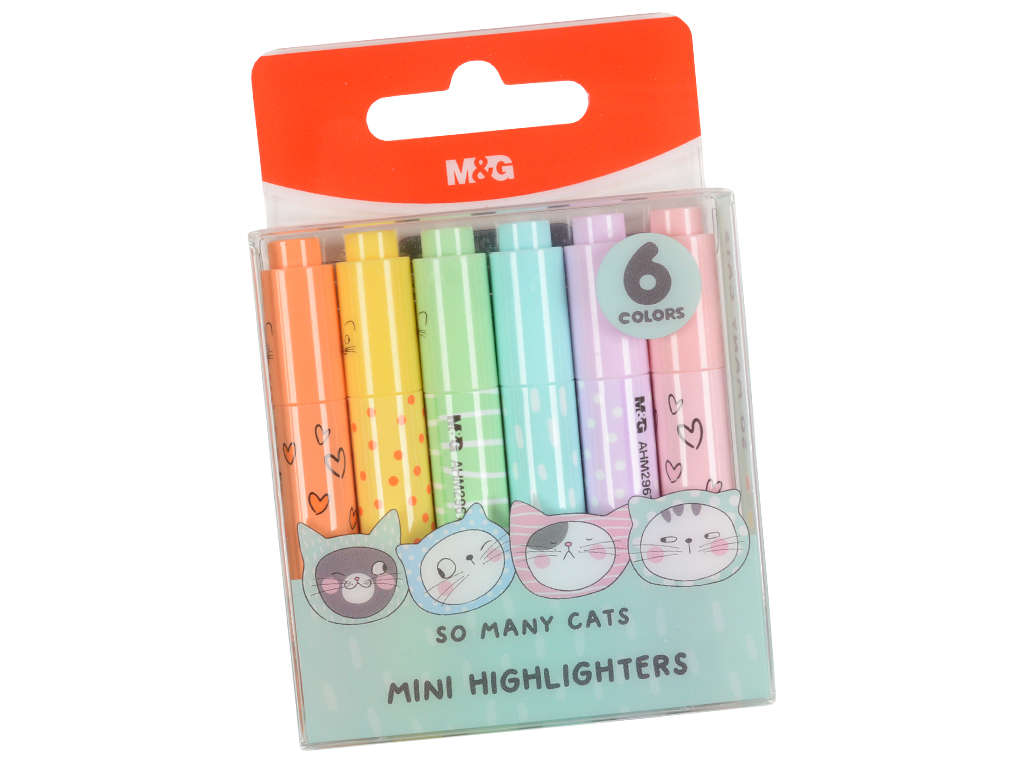 Kiek daug kačių! Madingos pastelinės spalvos puikiai tinka įvairiems užrašams paryškinti. Maži pasteliniai teksto žymekliai M&G „So Many Cats“ su plokščiu, pleišto formos galiuku, todėl žymėjimas bus tikslus.