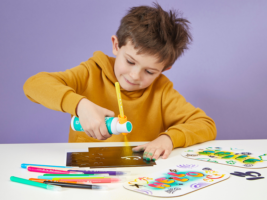 Kļūsti par mazo grafiti mākslinieku, izmantojot Maped Creativ Aibrush komplektu! Šis jautrais un bērniem draudzīgais komplekts pārveido parastos flomāsterus (Maped Jungle) par aizraujošu aerogrāfu, ļaujot viegli radīt spilgtus efektus grafiti stilā. Komplekts veicina iztēli un ļauj veikt mākslinieciskus eksperimentus. Ar trafaretiem, uzlīmēm un dažādām radošām aktivitātēm bērni var apvienot zīmēšanu un gleznošanu, lai radītu unikālus šedevrus.