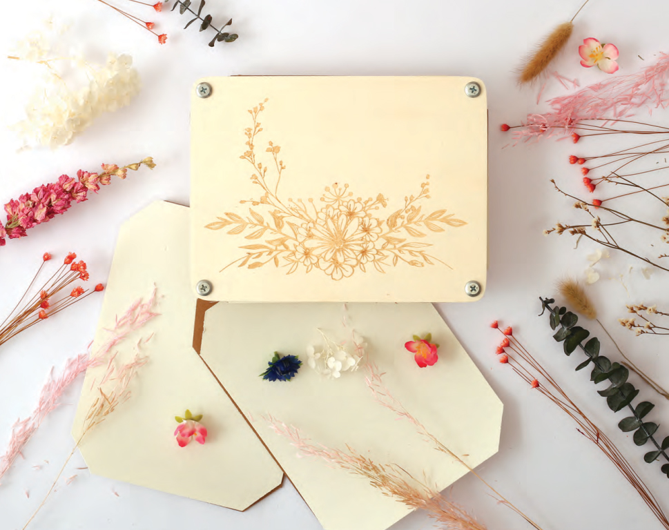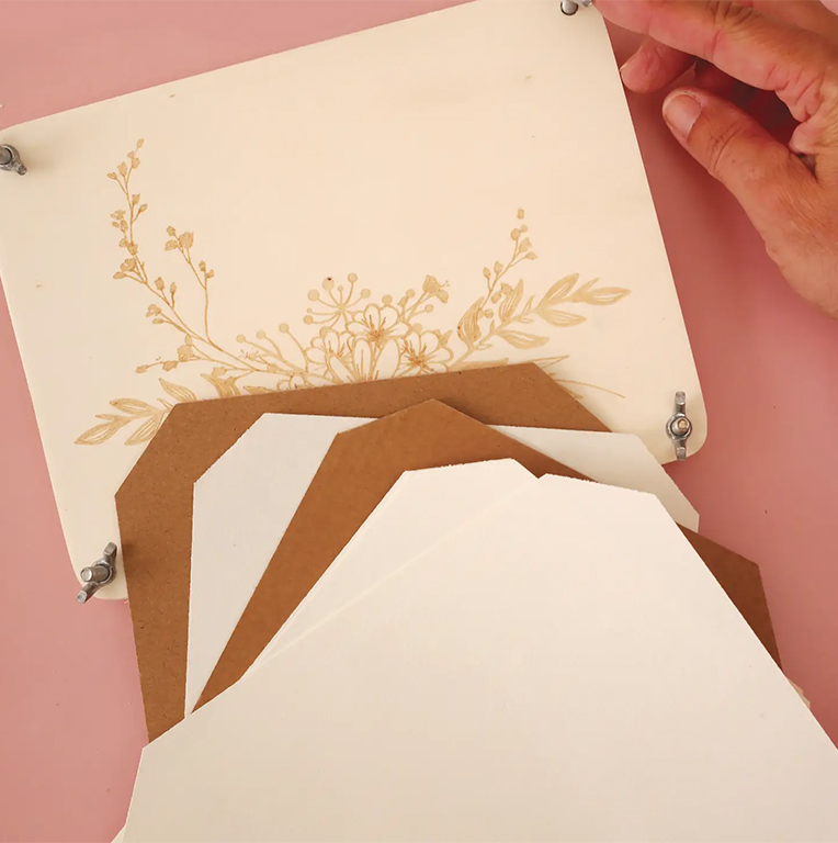 – 12 absorbējoša papīra lapas (palīdz novadīt mitrumu, saspiest un saglabāt ziedus)