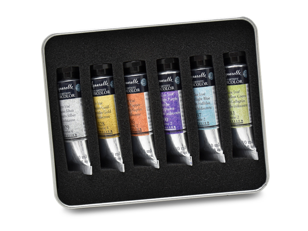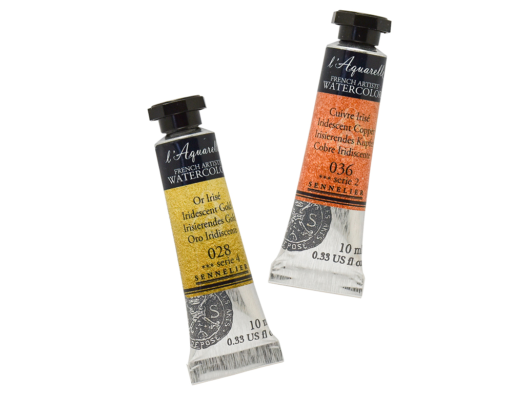 Sennelier sillerdavad pärlmutter toonides akvarellvärvid loovad vapustavaid metallikefekte, mis paistavad kaunilt silma nii heledal kui tumedal pinnal. Ideaalne oma kunstiteostele sügavuse ja uue mõõtme lisamiseks!
