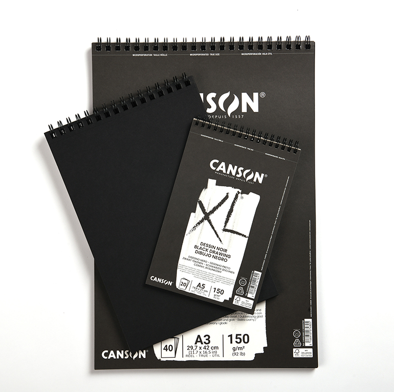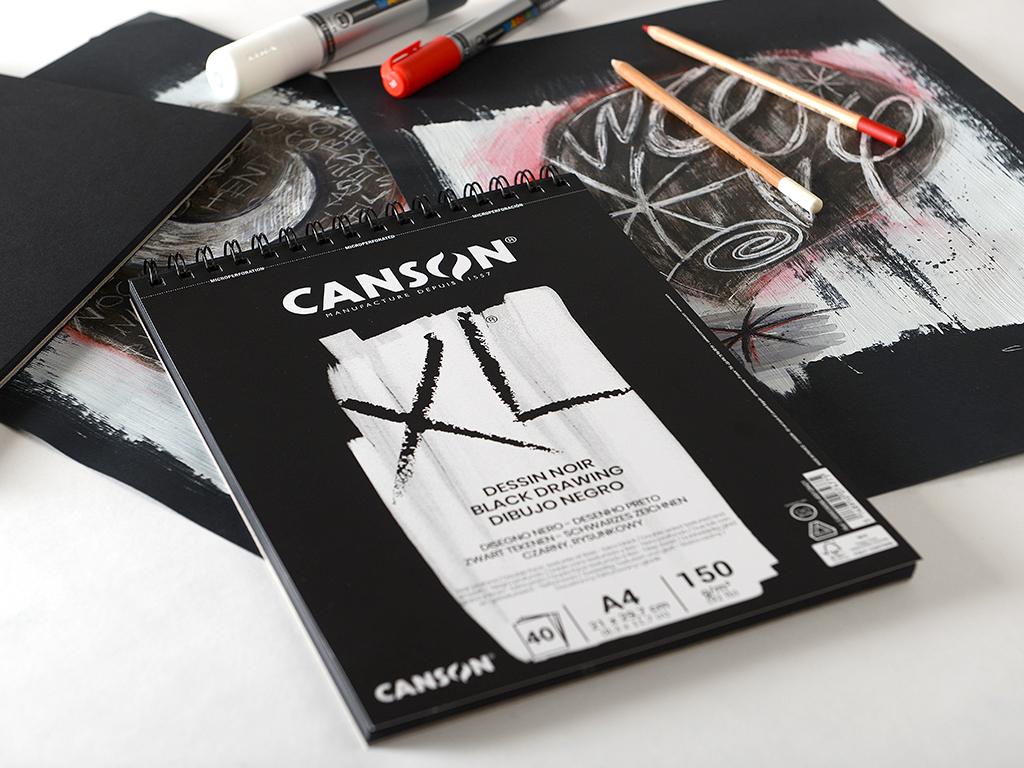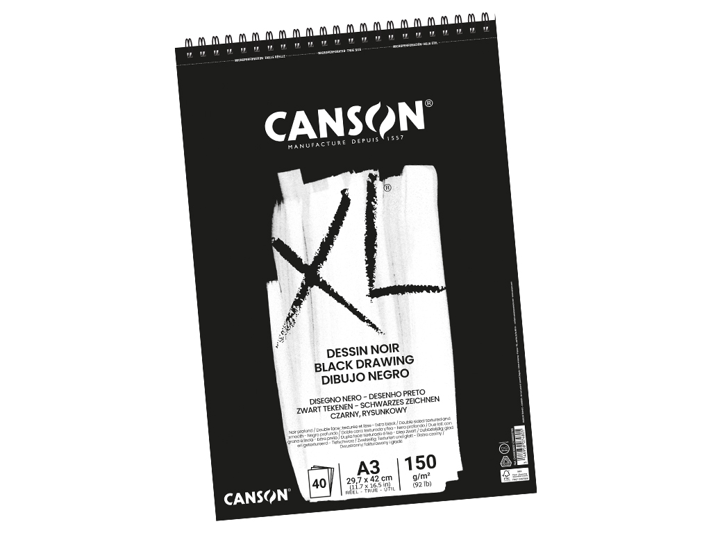 Canson XL Dessin musta visandiploki paber on massvärvitud, et saavutada rikkalik sügavmust toon. See sobib suurepäraselt pliiatsite, pastellide, söe, kriidi, markerite ja muude kuivtehnikate jaoks. Happevaba ja kahepoolselt kasutatav paber on mõlemalt küljelt pisut erineva siledusega. Selle vastupidav pind talub korduvat kustutamist, kraapimist ja hõõrdumist.