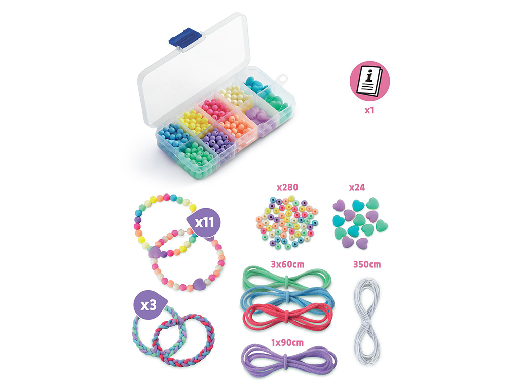 Väljenda oma loomingulisust ja loo oma stiil, valmistades kauneid käevõrusid! Komplekt sisaldab kõike vajalikku 14 unikaalse käevõru valmistamiseks.