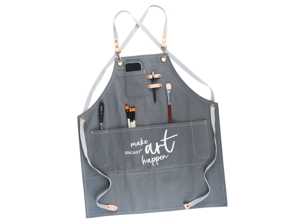Sinoart puuvillane põll sobib suurepäraselt maalijatele, juuksuritele, meigikunstnikele ja paljudele teistele loovspetsialistidele. See on valmistatud vastupidavast puuvillast ja kaunistatud nahast detailidega ning sellel on mitu taskut töövahendite ja tarvikute mugavaks hoidmiseks. Põll on hea istuvuse tagamiseks täielikult reguleeritav. Taskutel olevad aksessuaarid on illustratiivsed.