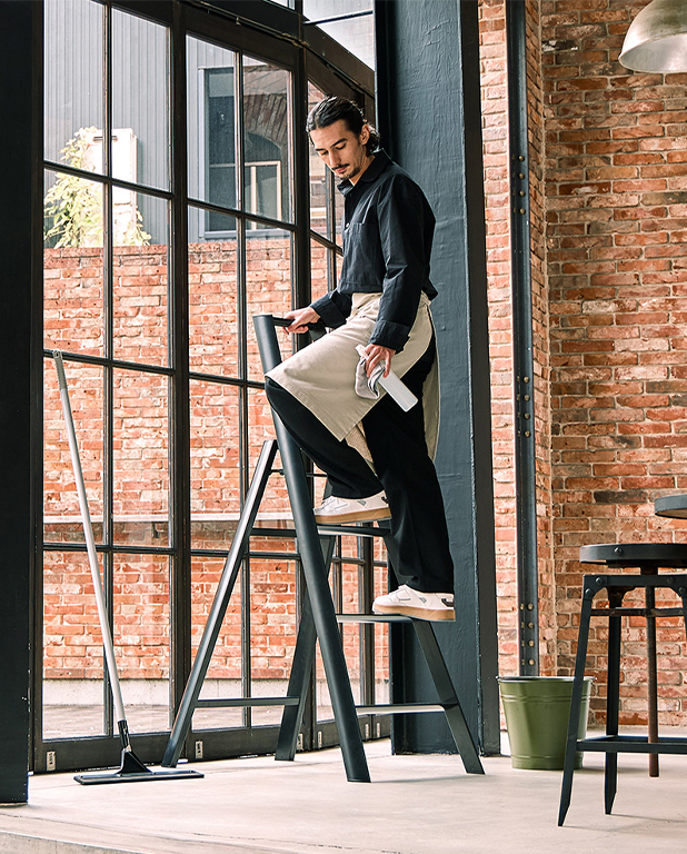 Alumiiniumist 4-astmeline redel, mis ühendab kerguse, tugevuse ja vastupidavuse modernse ning läbimõeldud disainiga. Tavapärase majapidamistarbe asemel on see ühtlasi ka stiilne sisustuselement. Kolmnurkse lõikega jalad ja astmed annavad redelile elegantsema ilme, muudavad selle kitsamaks ja lihtsamini hoiustatavaks. Ümarad ja siledad pinnad ning peidetud kinnitusdetailid rõhutavad minimalistlikku ja hoolikalt läbimõeldud vormi. Red Dot Award “Best of the Best” auhinna võitja.