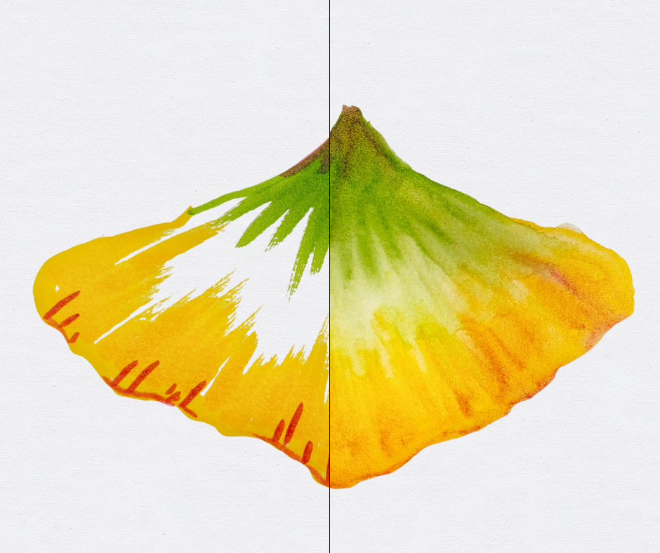 Tulemuseks on puhas, särav ja veidi läbikumav värvikiht, millele saab lisada ka traditsioonilist akvarelli või tindiaktsente.
